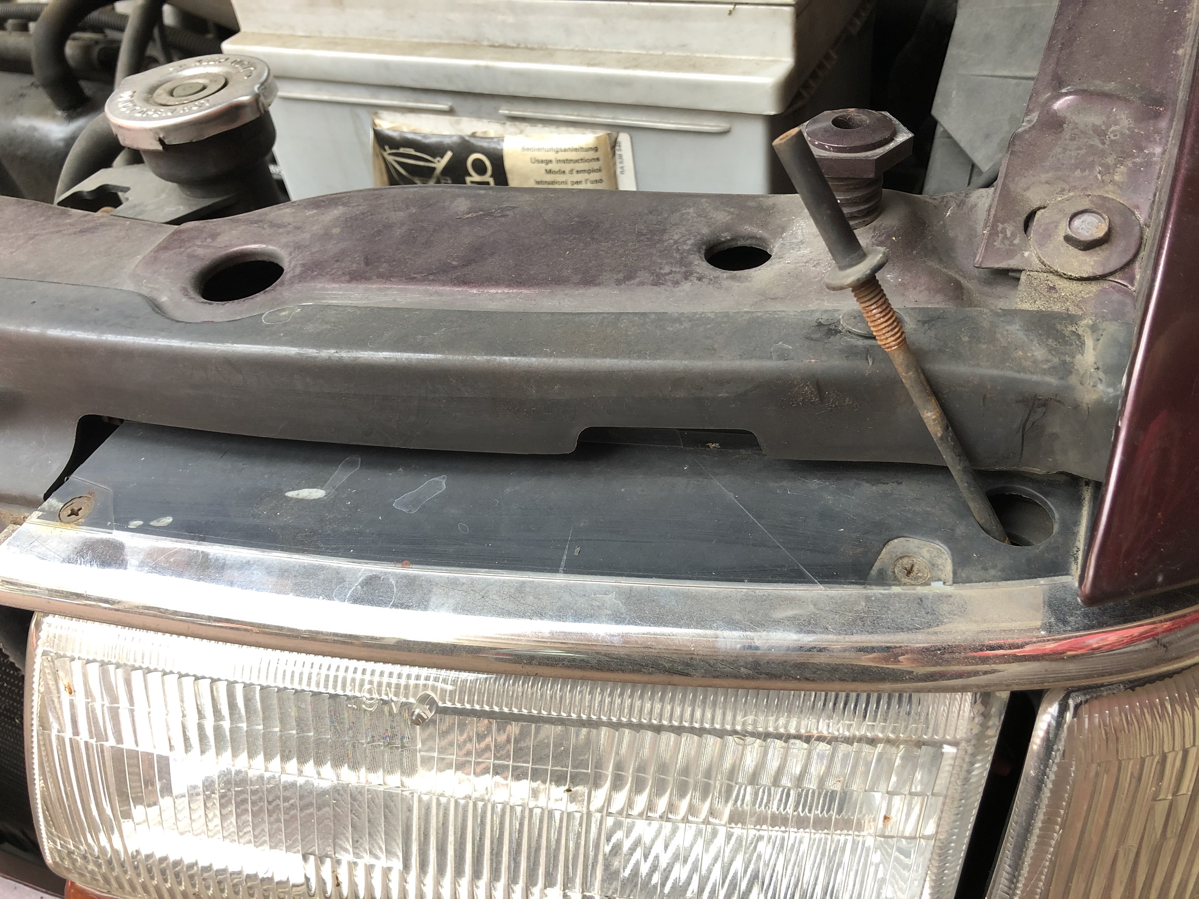Die Chromleiste ist im hinteren Bereich in den Scheinwerferträger gesteckt und wird nach vorne heraus gezogen.![]()