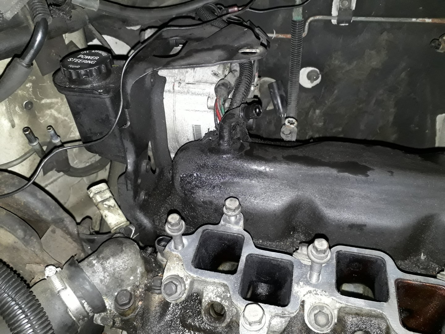 Dank des abgelassenen Kühlwassers konnte ich endlich den Rest der Ansaugbrücke und das Thermostatgehäuse ausbauen.