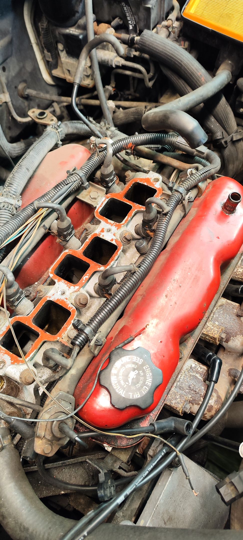Die Ansaugkanale habe ich einfach mit einer Pappe und etwas dichtmittel geschlossen es fallen gerne Nüsse, Schrauben und anderes dort hinein und wenn man etwas nicht braucht dann das. Auf dem Bild sieht man gut die Schraube die nicht original ist und nur zu Testzwecken verbaut wurde...